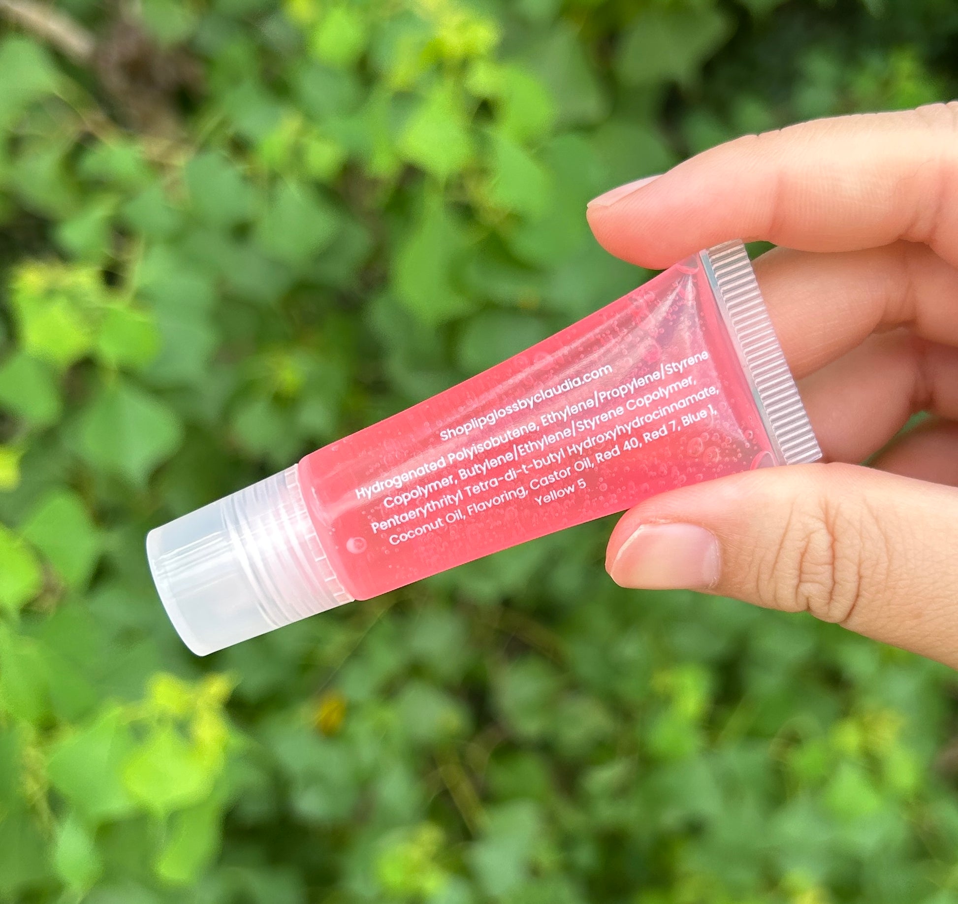 a gorgeous, reddish pink strawberry flavored lip gloss!
