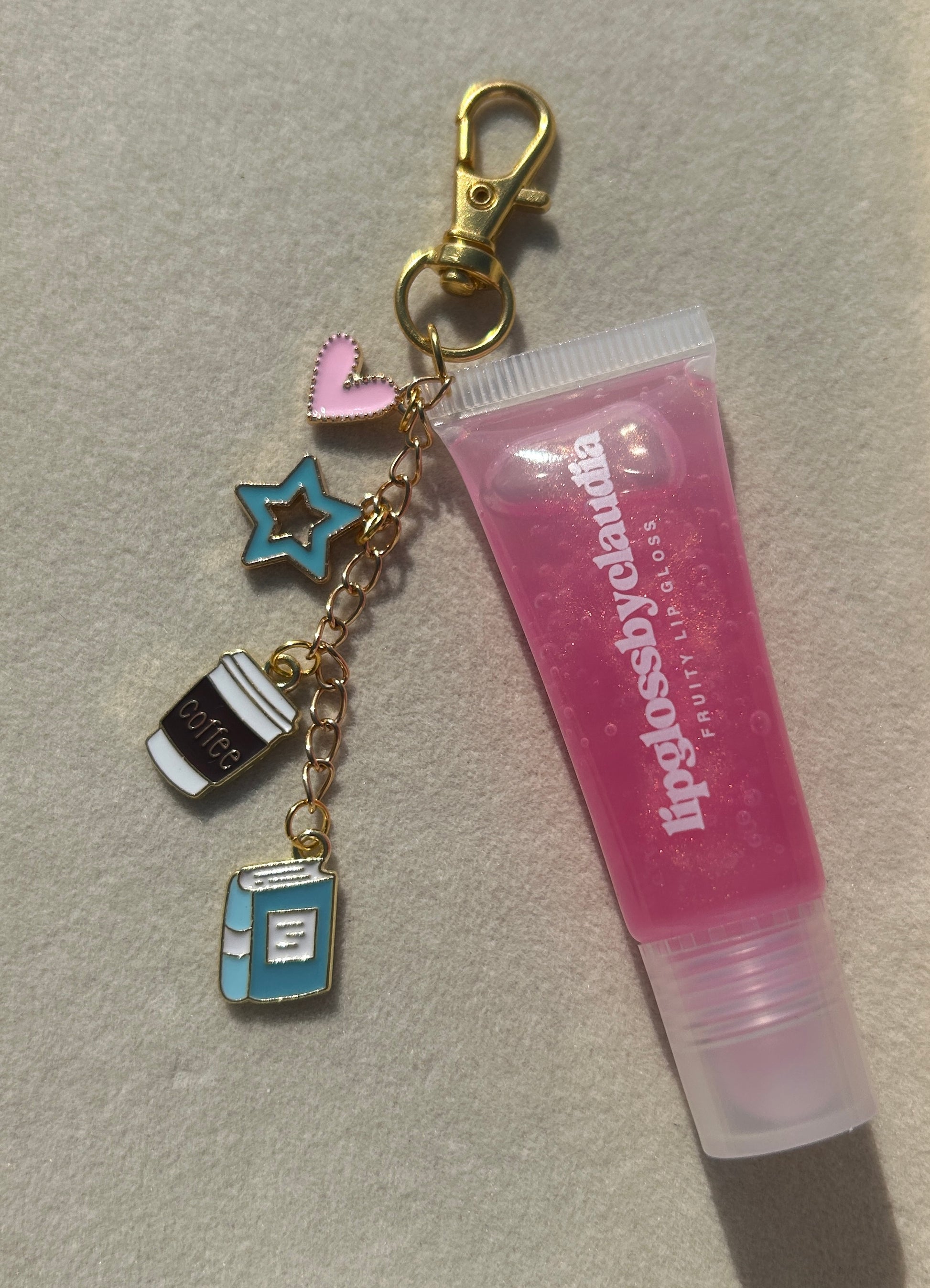 hook onto your backpack or bag for easy and accessible lip gloss application!